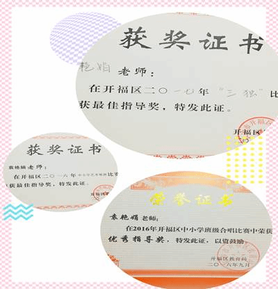 2016—2017年,多次荣获长沙市开福区“三独比赛”“中小学班级合唱比赛”“中小学艺术展演”最佳指导奖。